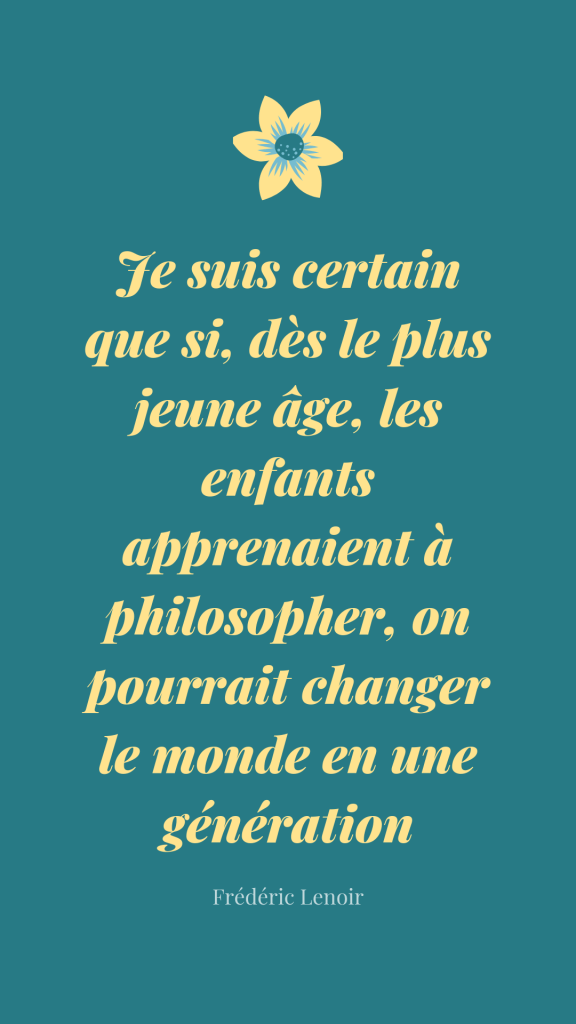 J’ai la chance d’animer des ateliers dans différents sites (école, médiathèque, CHU, association d’enfants scolarisés à la maison,centre aéré, par exemple), je constate à chaque fois le plaisir des enfants à partager leurs réflexions mais aussi à être écoutés par un adulte guidant, sans jugement. A l’école, le fait que je ne sois pas l’enseignant met les enfants dans une posture différente, ils ne sont plus apprenants mais co-constructeurs de la réflexion qui va les amener à trouver des réponses (ou des débuts de réponses) à des sujets qui les touchent. Je suis donc persuadée que nous avons un rôle important à jouer maintenant pour l’avenir de nos enfants.