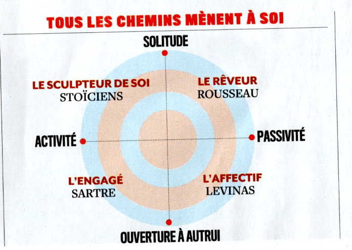 En fait, il existe différentes façons d’être soi. Leur point commun est que toute nécessitent volonté et efforts. Philosophie magazine, dans le numéro 131 de juillet/août 2019, l’a très bien résumé dans ce schéma que je me suis permise de scanner.