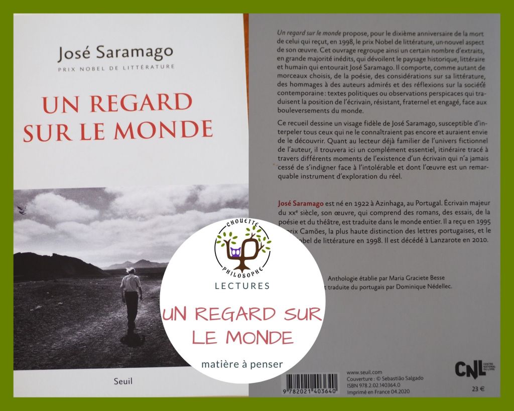 Ce titre du livre de José Saramago est comme une invitation à prendre le temps de regarder autour de nous avec plus d’attention. Ce livre réunit des morceaux choisis des cahiers dans lesquels l’auteur développait ses pensées ainsi que des discours, articles et autres considérations.