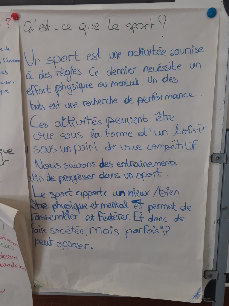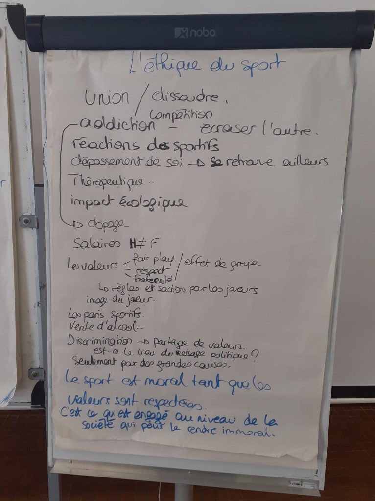 Pour préparer cette journée, j’ai lu le livre de P Sarremejane, Éthique et sport, éditions Sciences Humaines, des articles de Isabelle Queval ainsi que des podcasts de France Culture. Sans oublier les discussions avec mon fils aîné qui m’ont bien aidé.