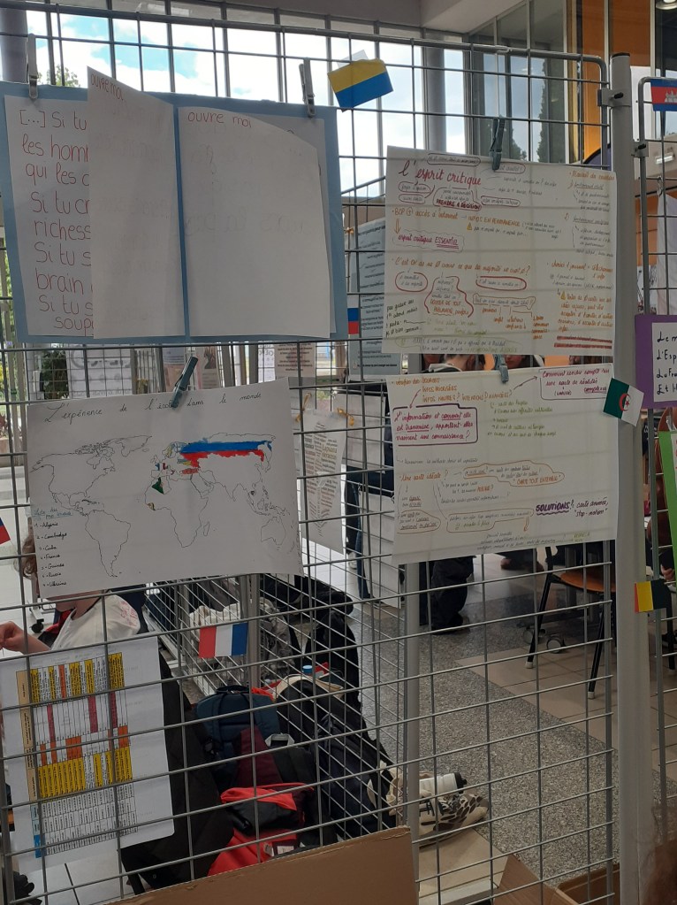Cette journée a été très valorisante pour les élèves qui présentaient leurs travaux sur le stand de leur classe mais également enrichissante grâce à la variété des sujets à découvrir. Il y avait de nombreux sujets scientifiques avec de belles maquettes que les élèves présentaient avec une grande application tandis que d’autres, comme celui de la classe que j’accompagnais, étaient plus artistiques dans leur présentation tout en conservant une analyse scientifique du sujet.