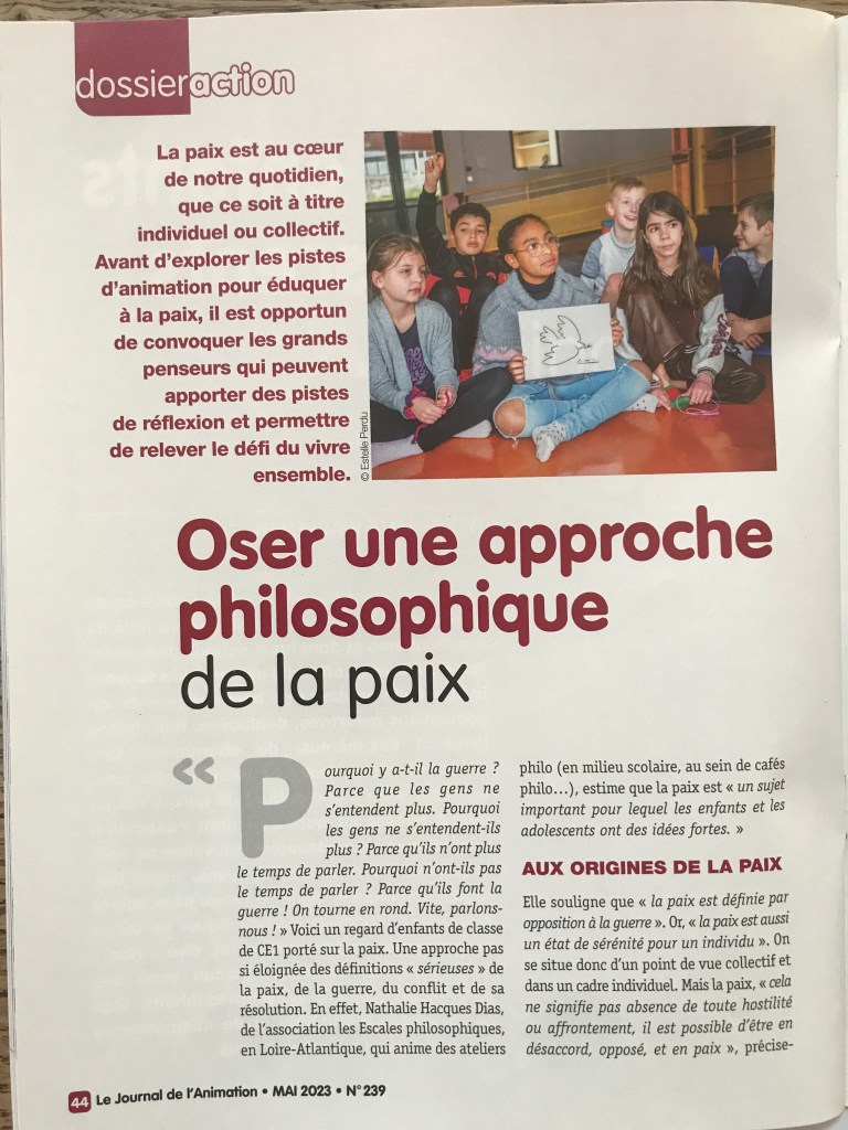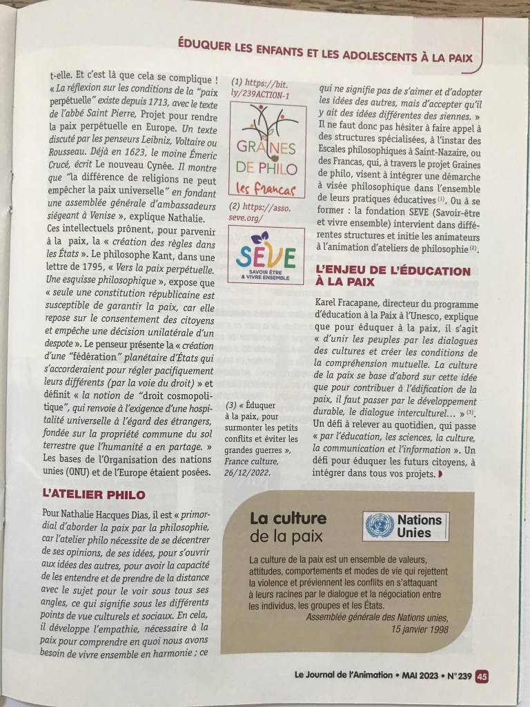Interview d’Isabelle Wackenier pour le dossier sur l’éducation à la paix dans le Journal de l’animation